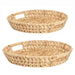 Handwoven natural trays. Made of water hyacinth. 16 D X 2.5" and 18 D X 2.5". Wipe with a damp cloth.