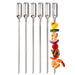 The OXO Stainless Steel BBQ Skewers come in a set of six, each designed to make grilling kabobs simple and secure. The flat skewer shape prevents food from spinning, ensuring even cooking, while the wide handles provide a firm grip for effortless turning with tongs. Curved handles allow the skewers to nest together neatly for compact storage.