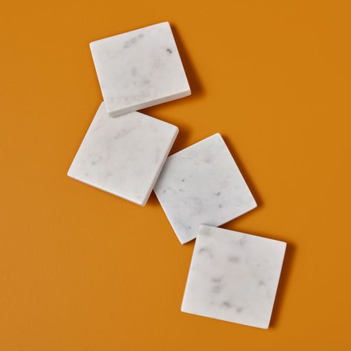 Be Home White Marble Square Coasters set of 4